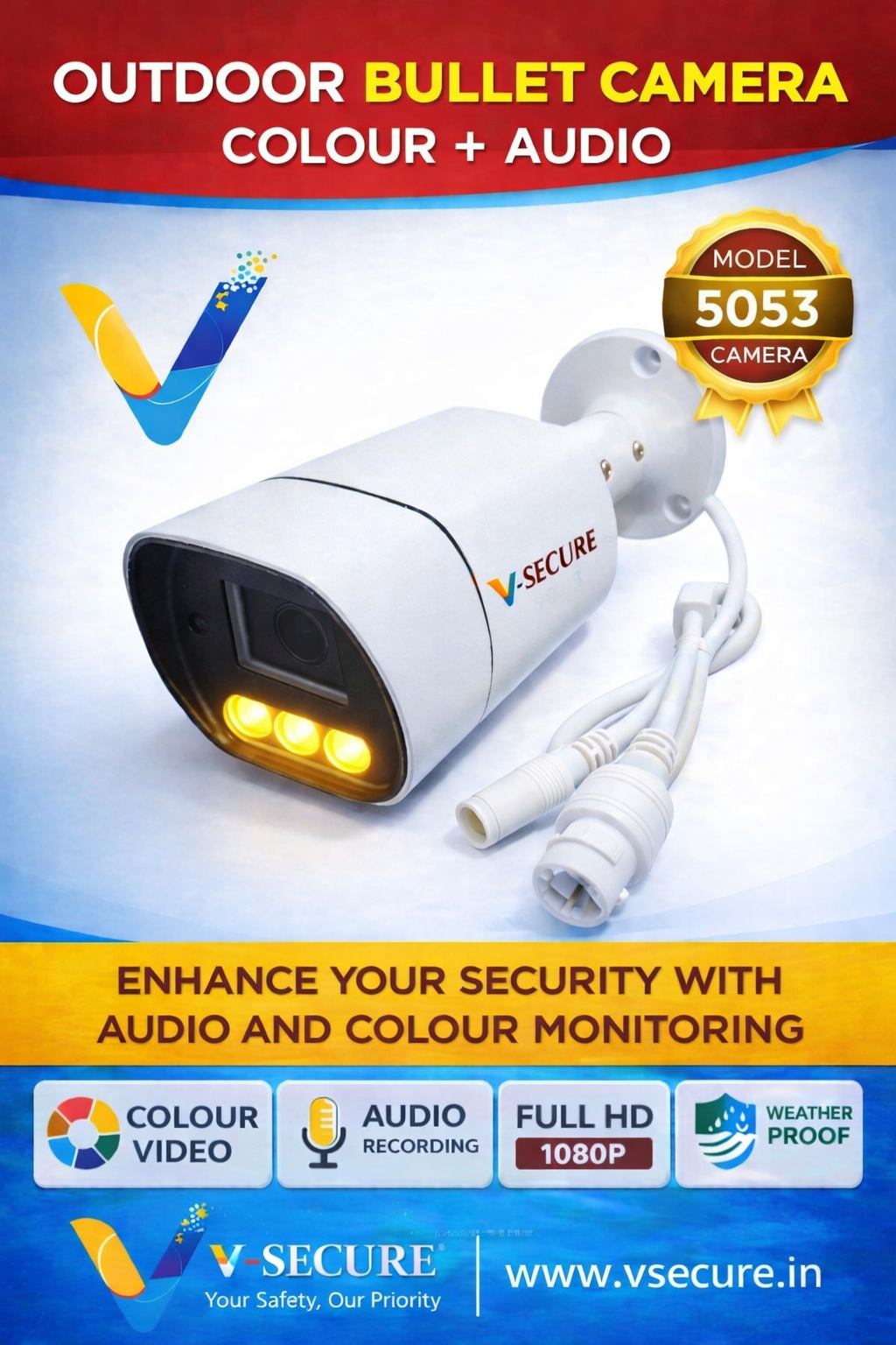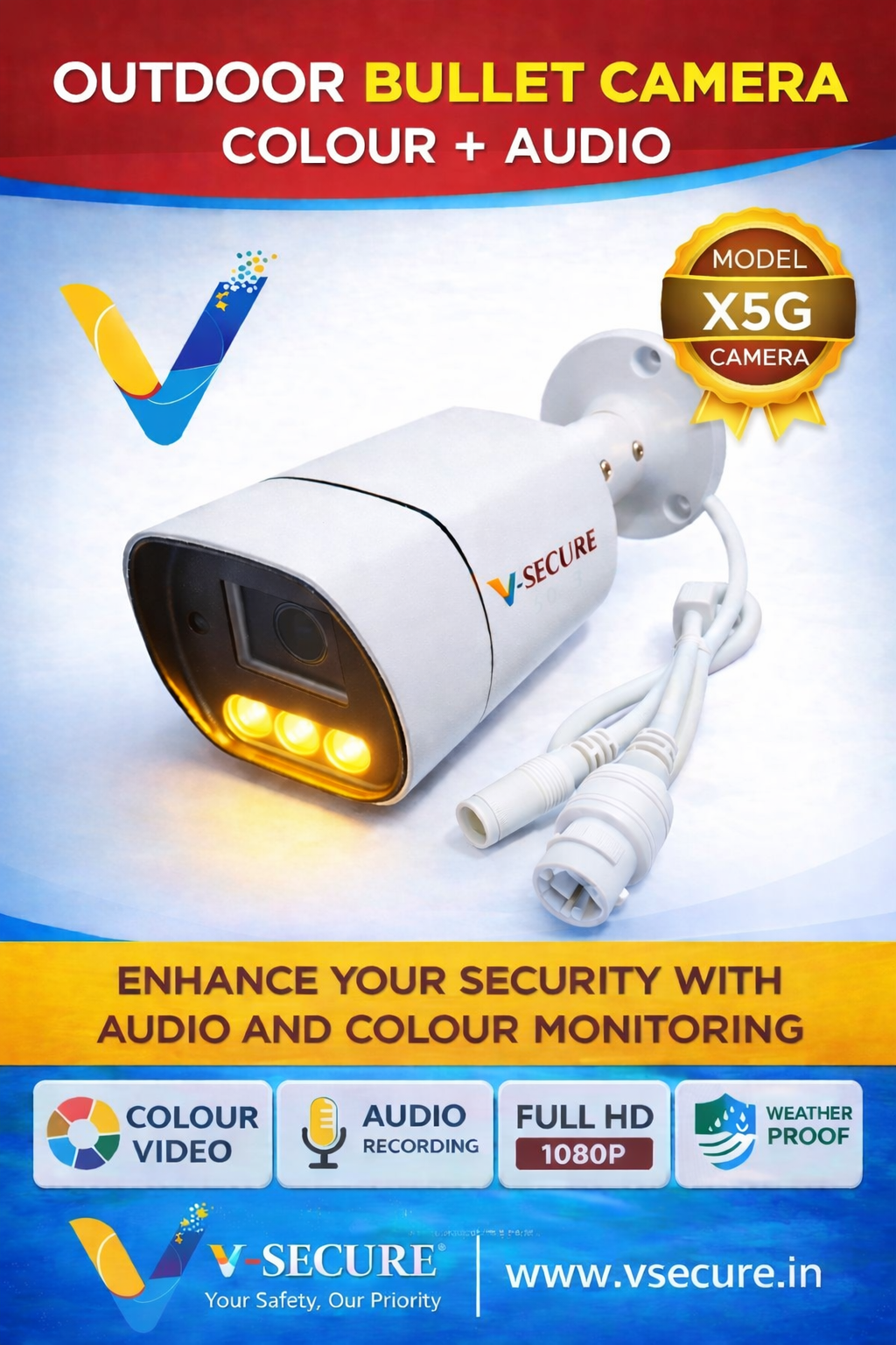 5 MP IP Bullet Camera Colour + Audio Warm Light (VS-2CBFX5G3-MB)